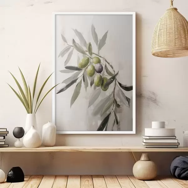 Plakatas žaliosios alyvuogės, šakų detalės, ekologiškas, natūralus fonas, natūrali paletė, kaimiškas, šviesus fonas Ne f45110