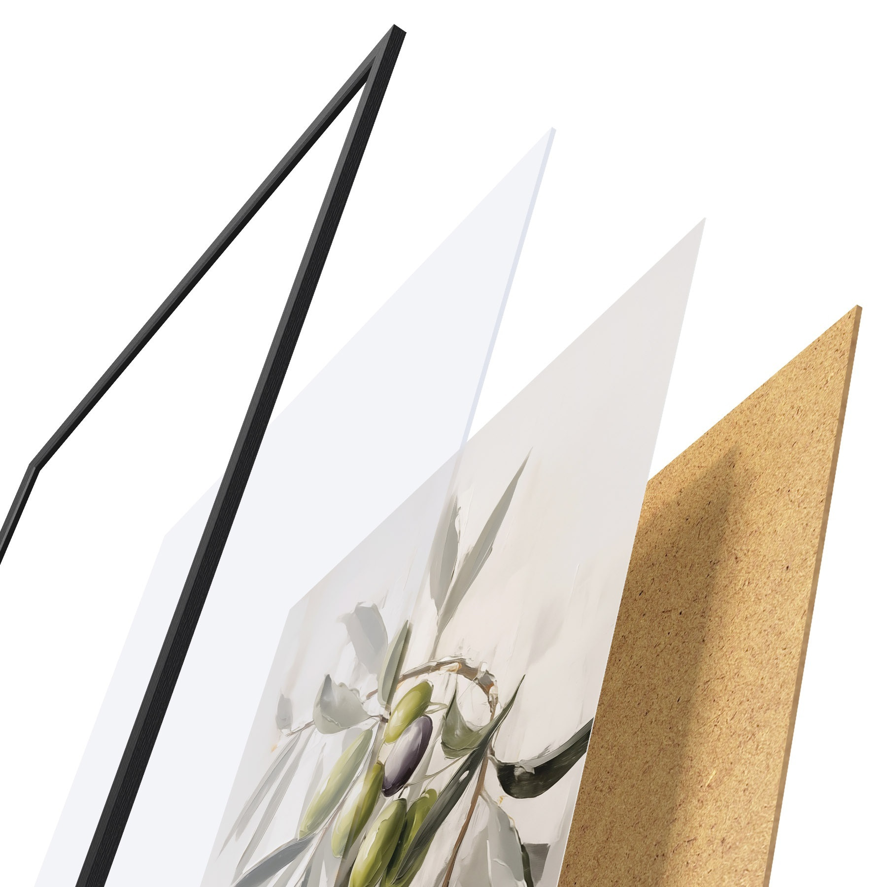 Plakatą sudaro rėmas, pleksiklas, atspausdintas vaizdas ir medžio drožlių plokštės pagrindas. Plakatą galima iš karto pakabinti ant sienos dėl kitoje pusėje esančių laikiklių.