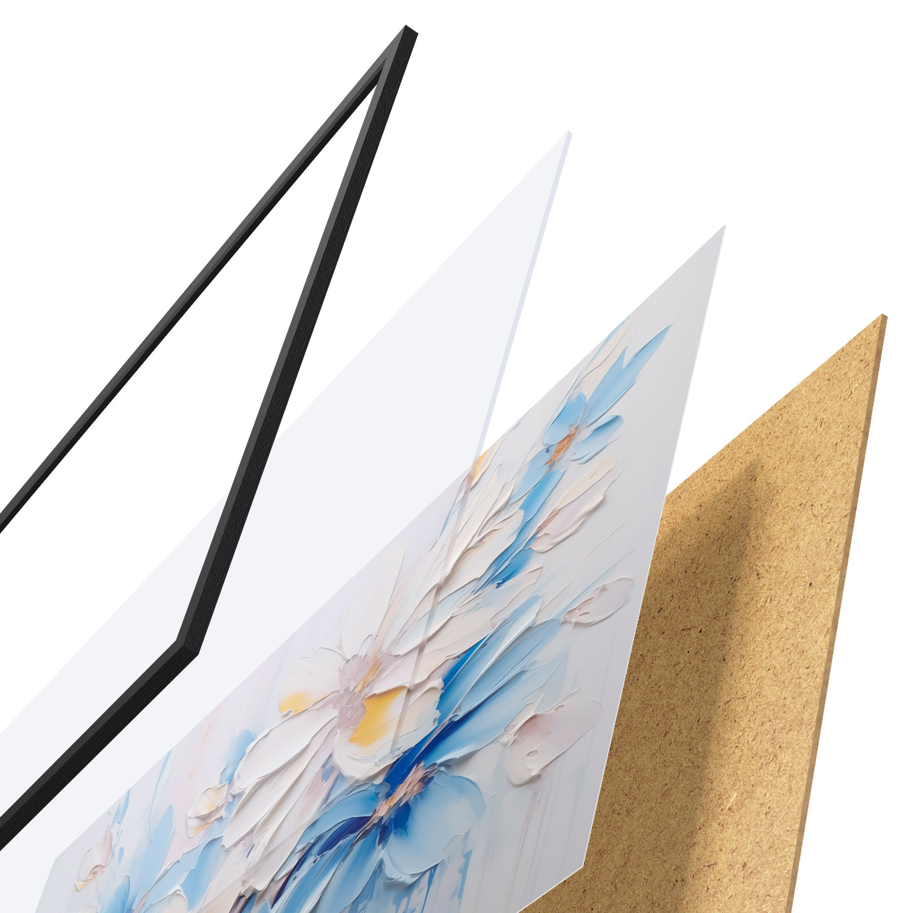 Plakatą sudaro rėmas, pleksiklas, atspausdintas vaizdas ir medžio drožlių plokštės pagrindas. Plakatą galima iš karto pakabinti ant sienos dėl kitoje pusėje esančių laikiklių.