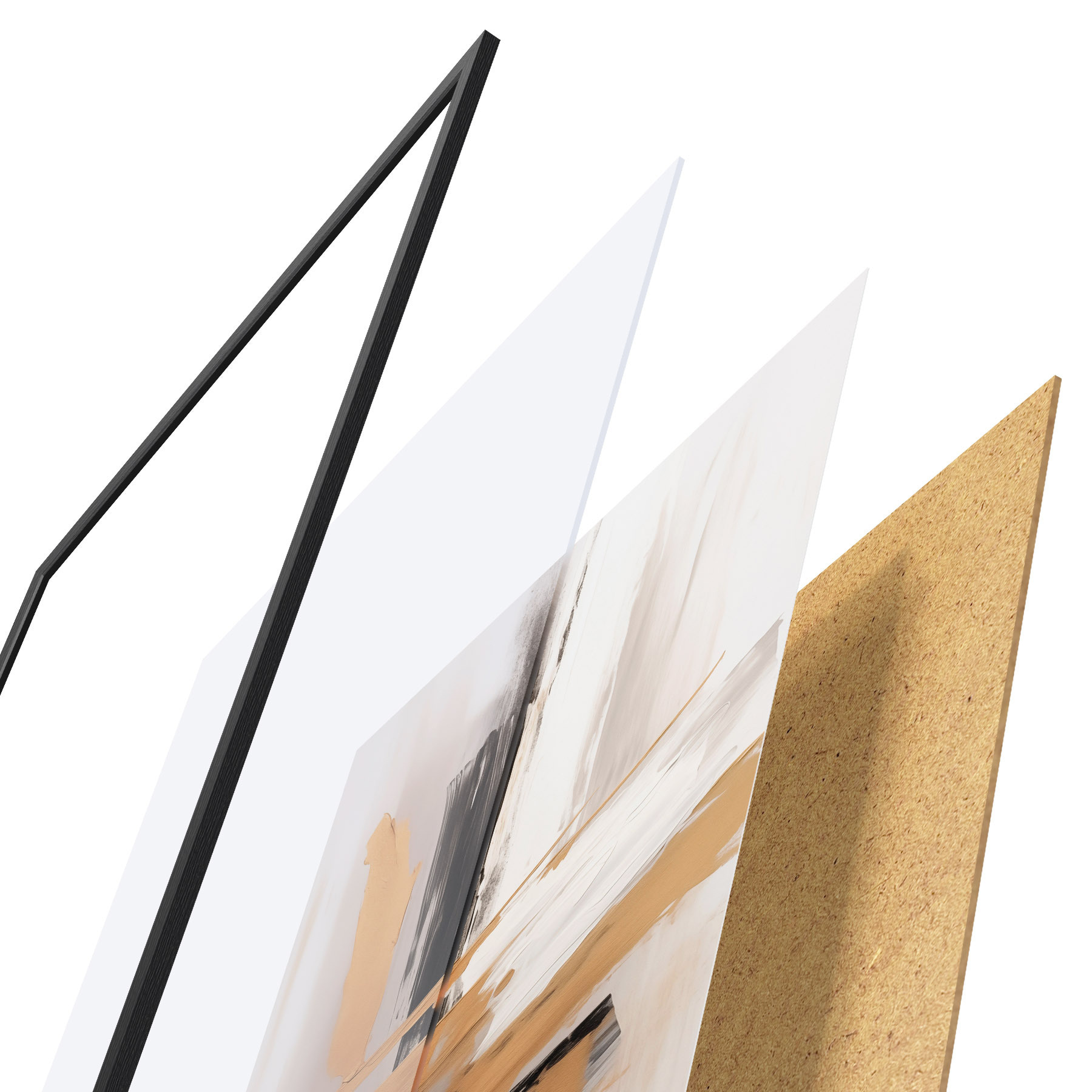 Plakatą sudaro rėmas, pleksiklas, atspausdintas vaizdas ir medžio drožlių plokštės pagrindas. Plakatą galima iš karto pakabinti ant sienos dėl kitoje pusėje esančių laikiklių.