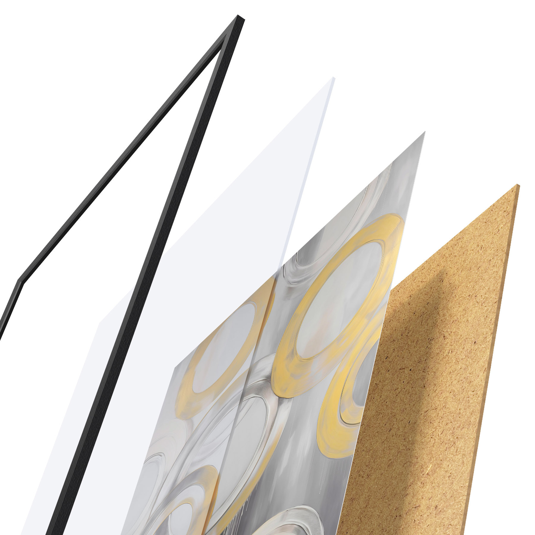 Plakatą sudaro rėmas, pleksiklas, atspausdintas vaizdas ir medžio drožlių plokštės pagrindas. Plakatą galima iš karto pakabinti ant sienos dėl kitoje pusėje esančių laikiklių.