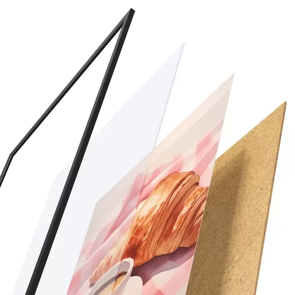 Plakatą sudaro rėmas, pleksiklas, atspausdintas vaizdas ir medžio drožlių plokštės pagrindas. Plakatą galima iš karto pakabinti ant sienos dėl kitoje pusėje esančių laikiklių.