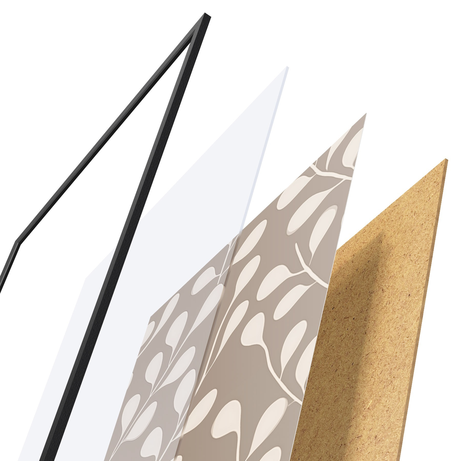 Plakatą sudaro rėmas, pleksiklas, atspausdintas vaizdas ir medžio drožlių plokštės pagrindas. Plakatą galima iš karto pakabinti ant sienos dėl kitoje pusėje esančių laikiklių.