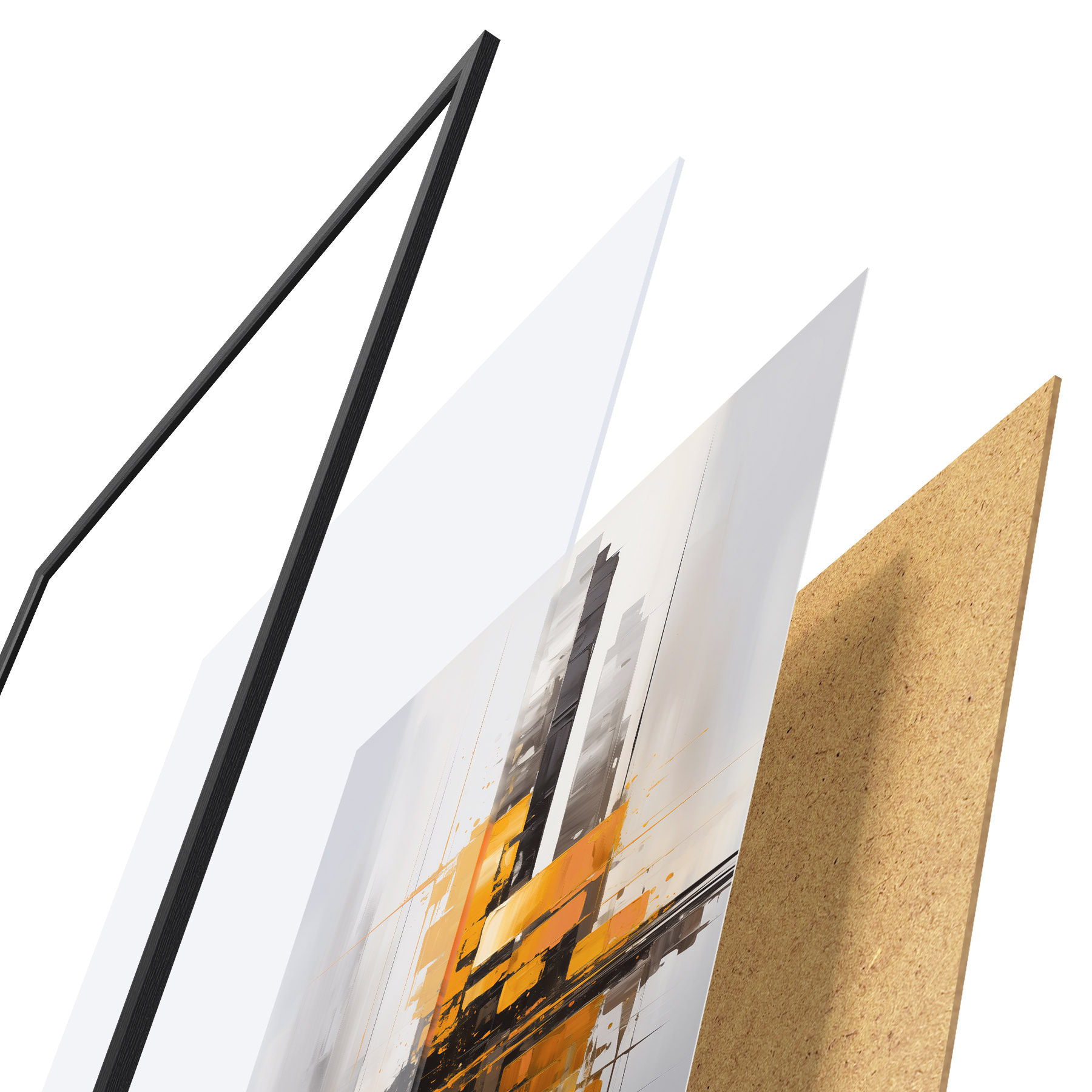 Plakatą sudaro rėmas, pleksiklas, atspausdintas vaizdas ir medžio drožlių plokštės pagrindas. Plakatą galima iš karto pakabinti ant sienos dėl kitoje pusėje esančių laikiklių.