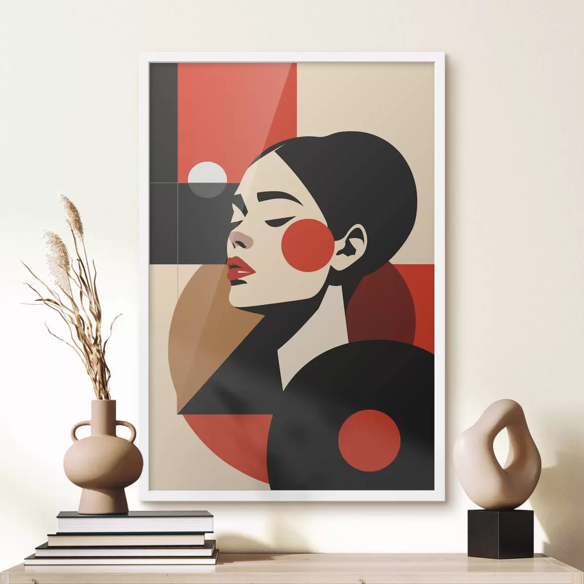 Plakatas Abstraktus moters portretas bauhauzo stiliumi f45165