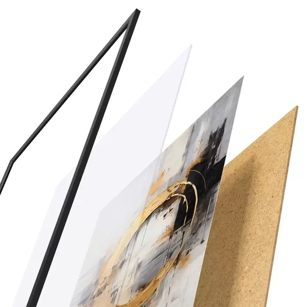 Plakatą sudaro rėmas, pleksiklas, atspausdintas vaizdas ir medžio drožlių plokštės pagrindas. Plakatą galima iš karto pakabinti ant sienos dėl kitoje pusėje esančių laikiklių.