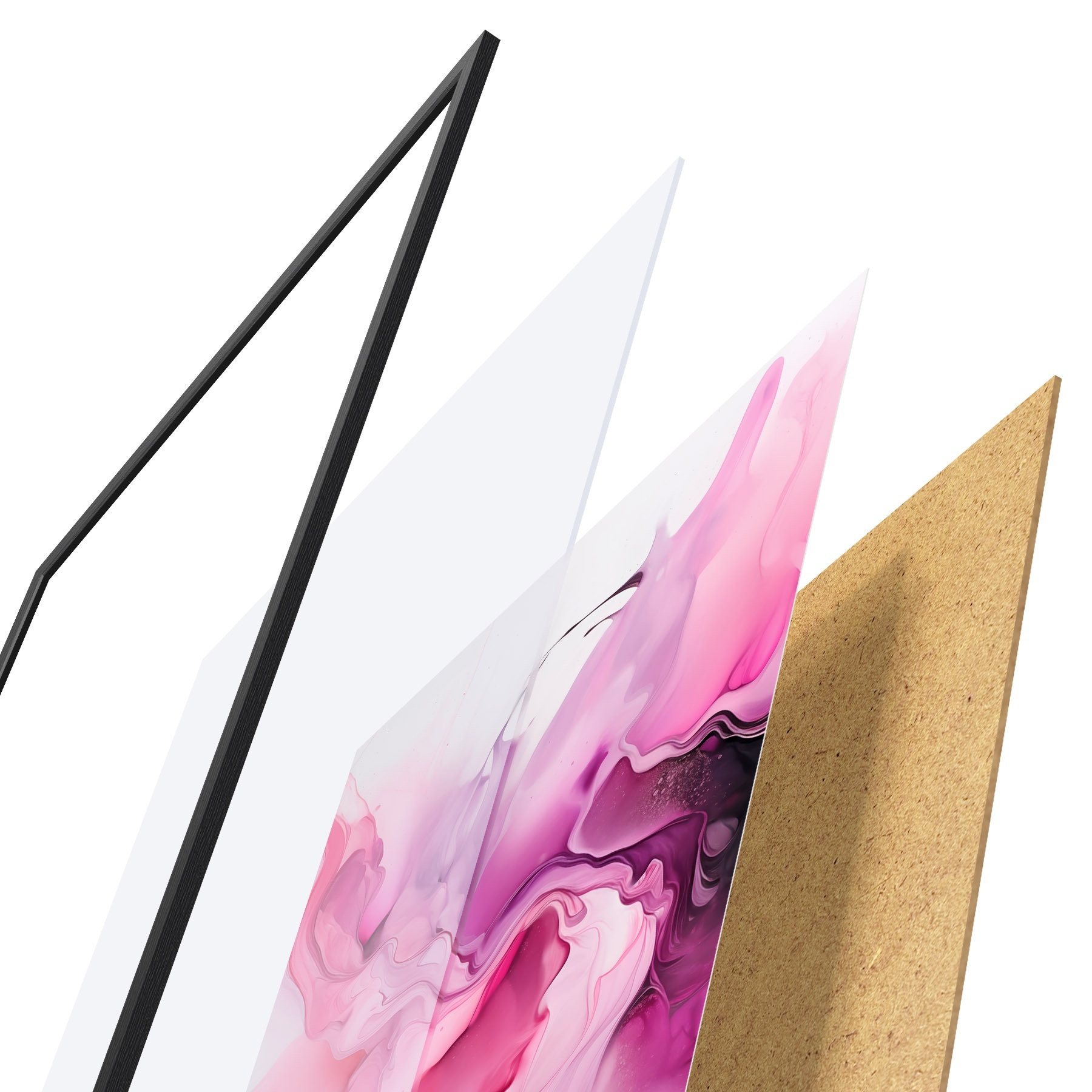 Plakatas Abstraktūs rausvos, violetinės ir juodos spalvos sūkuriai susilieja į sklandžią, organišką kompoziciją ir sukuria judėjimo įspūdį f45195