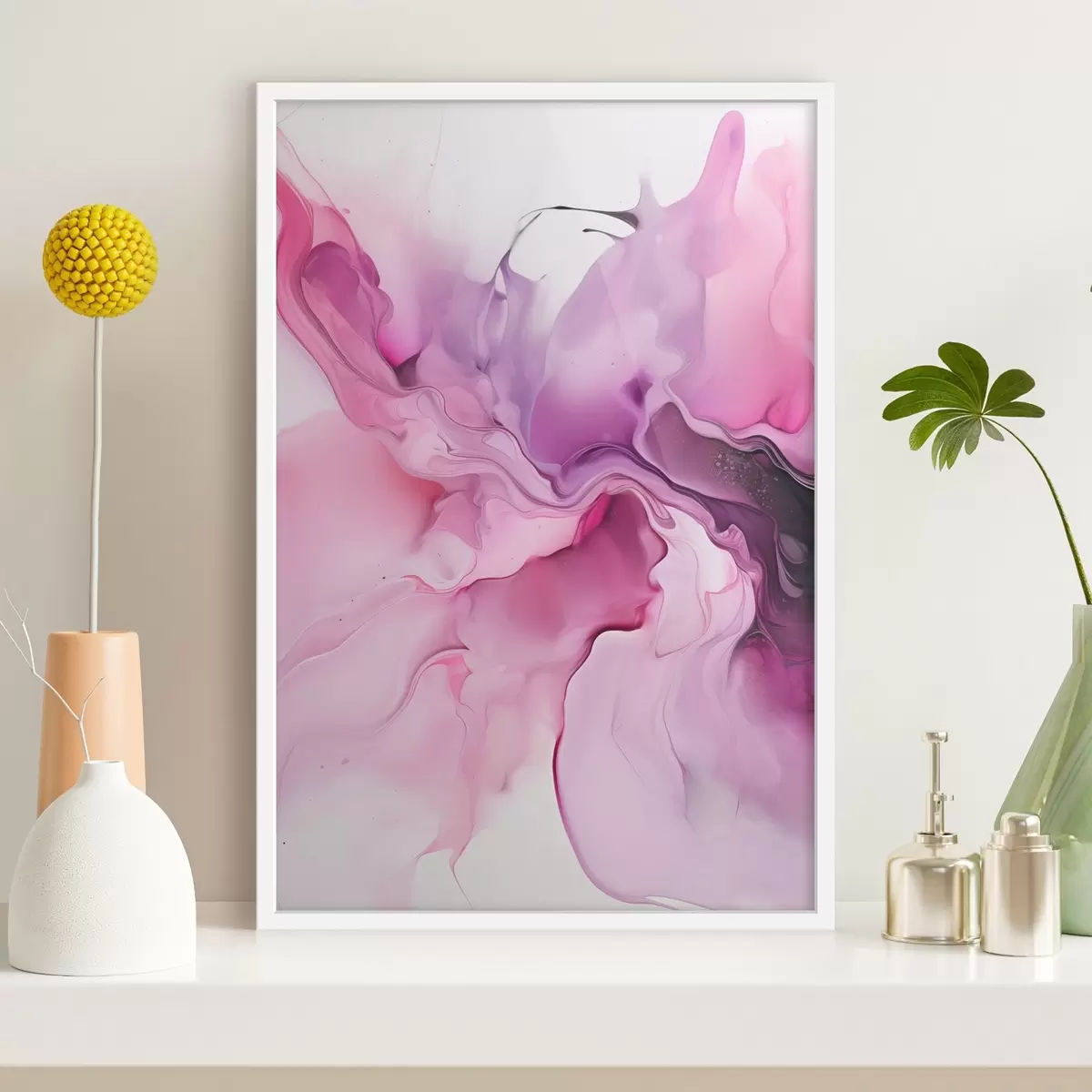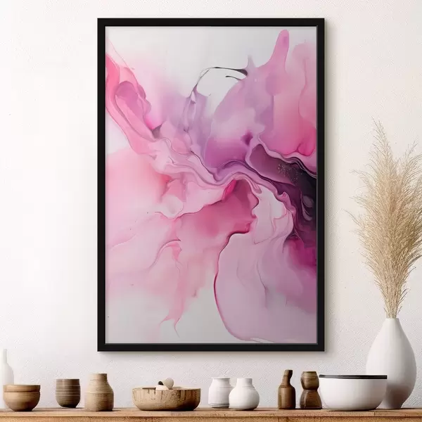 Plakatas Abstraktūs rausvos, violetinės ir juodos spalvos sūkuriai susilieja į sklandžią, organišką kompoziciją ir sukuria judėjimo įspūdį f45195