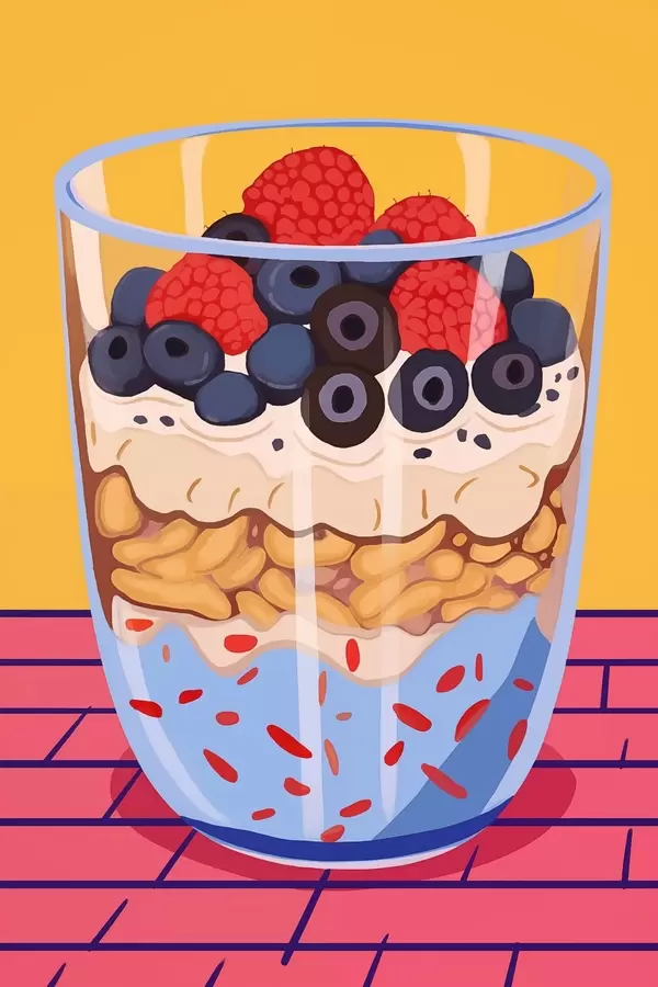 Plakatas Stiklinė su jogurtu, uogomis ir dribsniais f45216