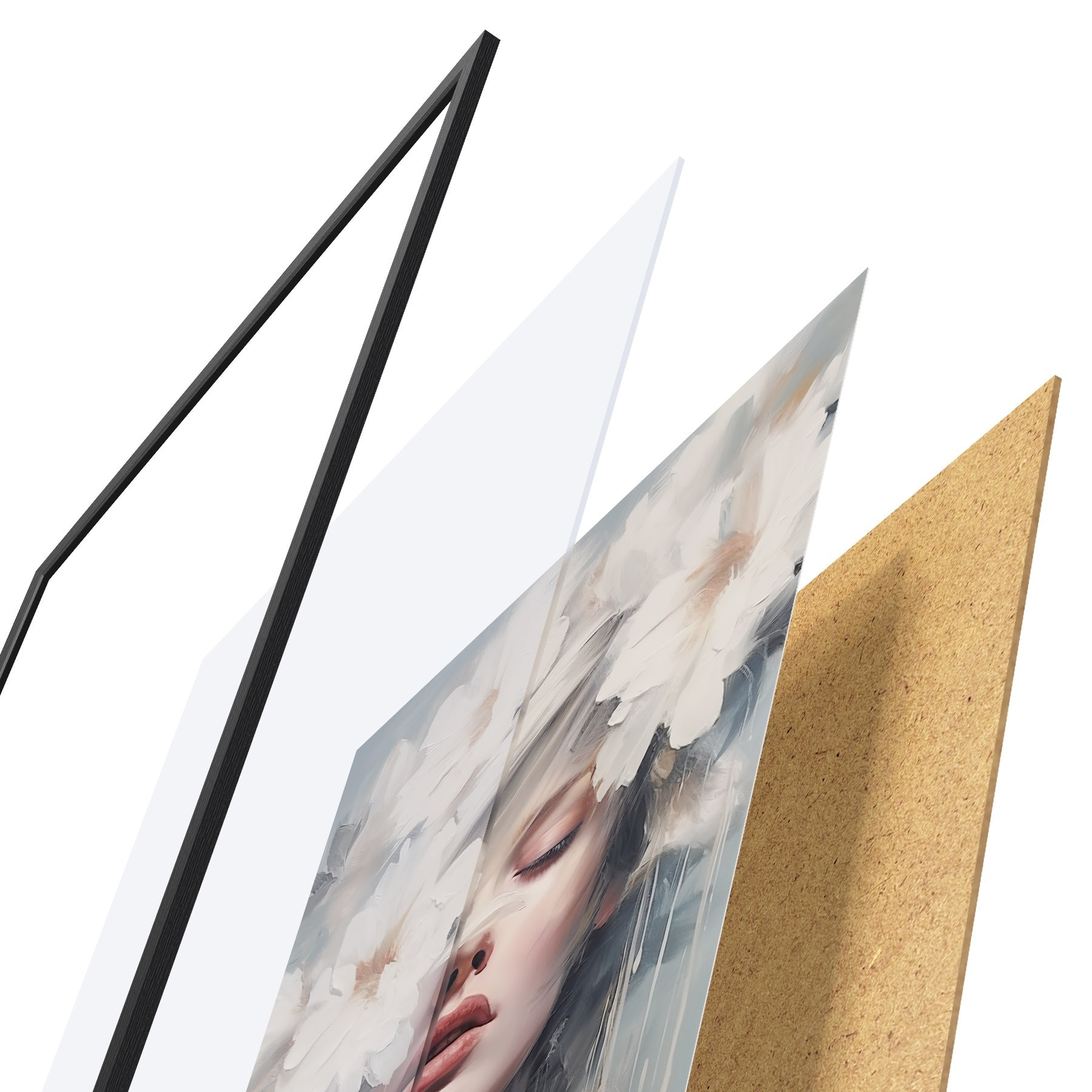 Plakatas Moters portretas su baltomis gėlėmis Ne f45219