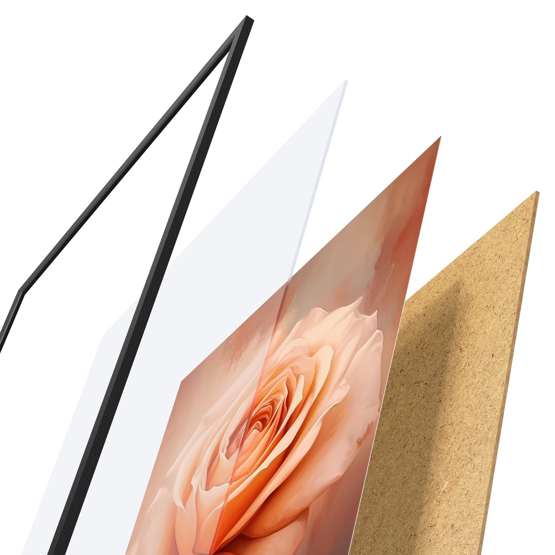 Plakatą sudaro rėmas, pleksiklas, atspausdintas vaizdas ir medžio drožlių plokštės pagrindas. Plakatą galima iš karto pakabinti ant sienos dėl kitoje pusėje esančių laikiklių.