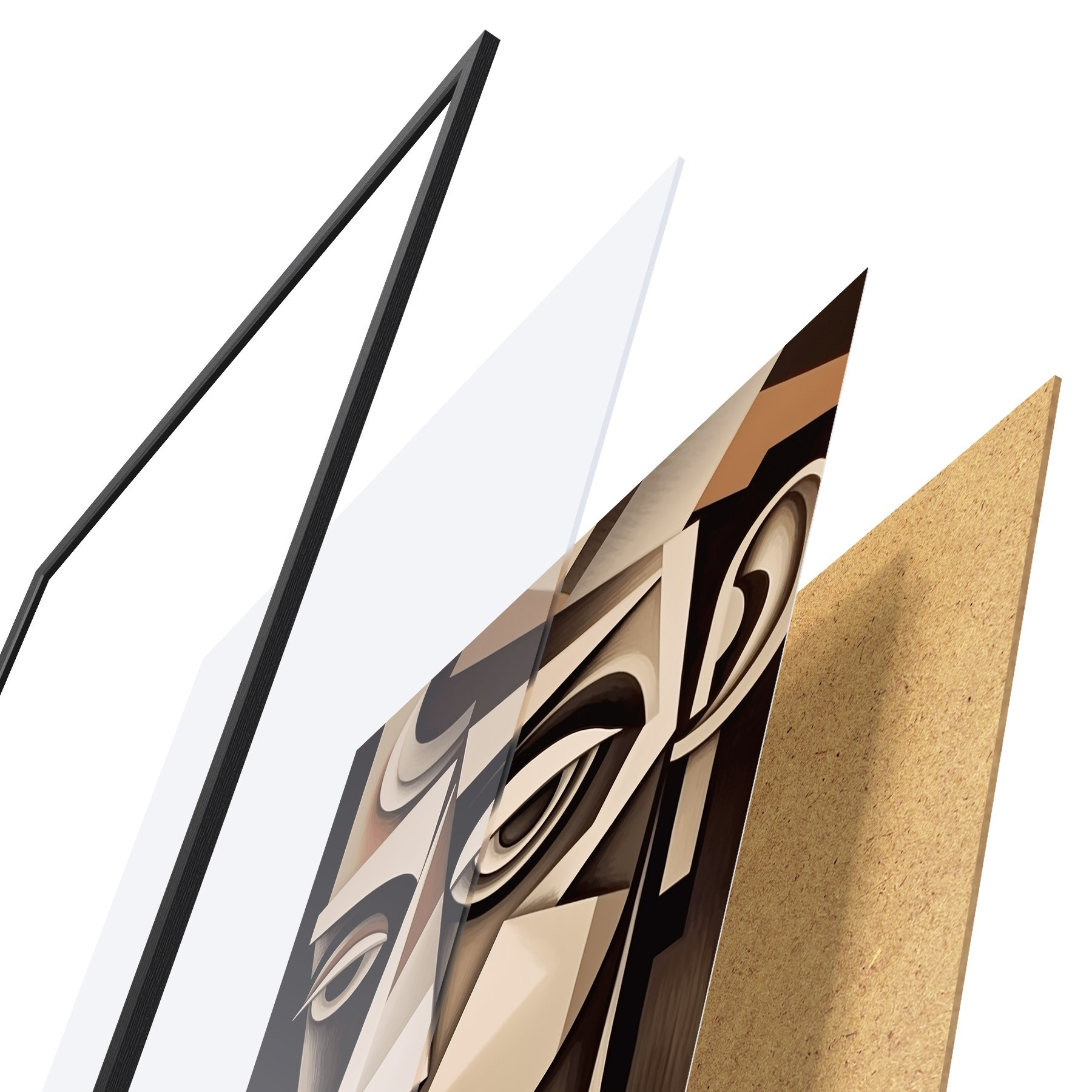 Plakatą sudaro rėmas, pleksiklas, atspausdintas vaizdas ir medžio drožlių plokštės pagrindas. Plakatą galima iš karto pakabinti ant sienos dėl kitoje pusėje esančių laikiklių.