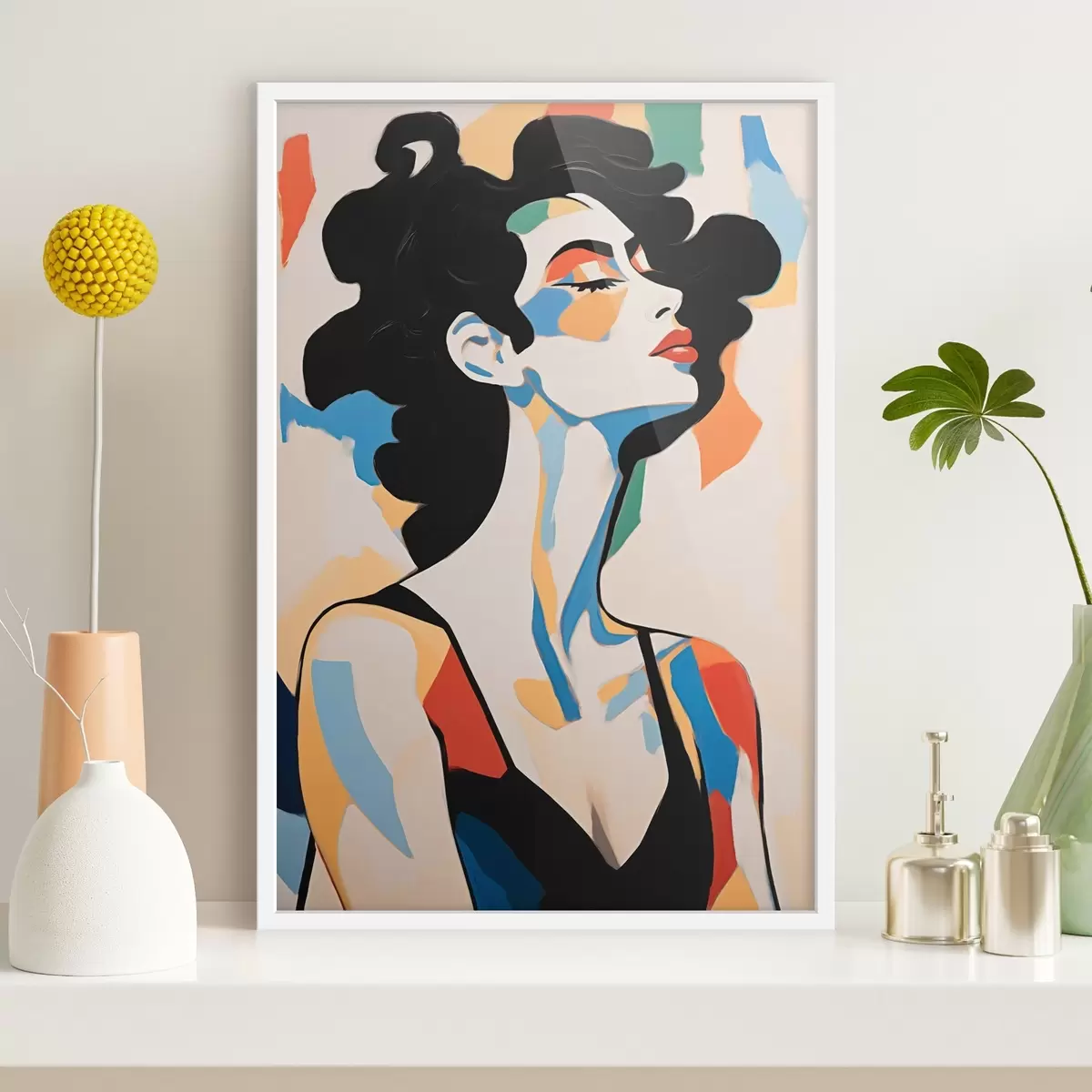 Plakatas Abstraktus moters portretas su teptuko potėpių imitacija f45233