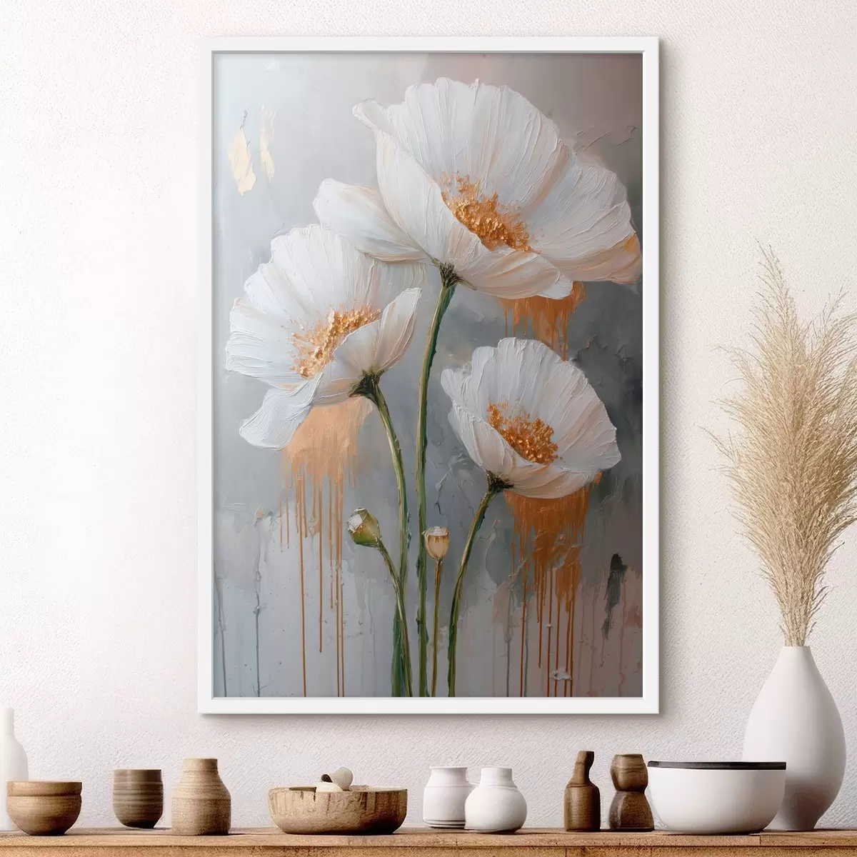 Plakatas Baltos margainės: tūrinis paveikslas mėlyname fone f45240