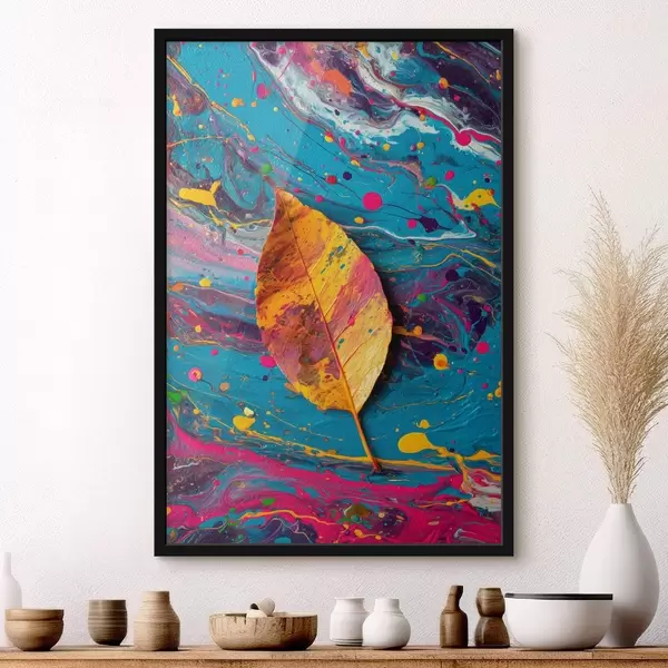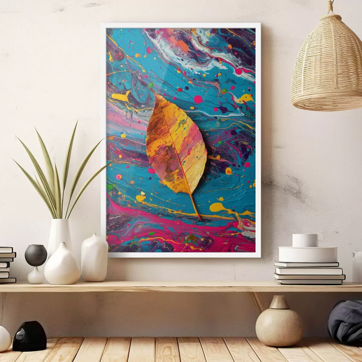 Plakatas Ryškus lapas spalvingame fone: abstrakti kompozicija f45245