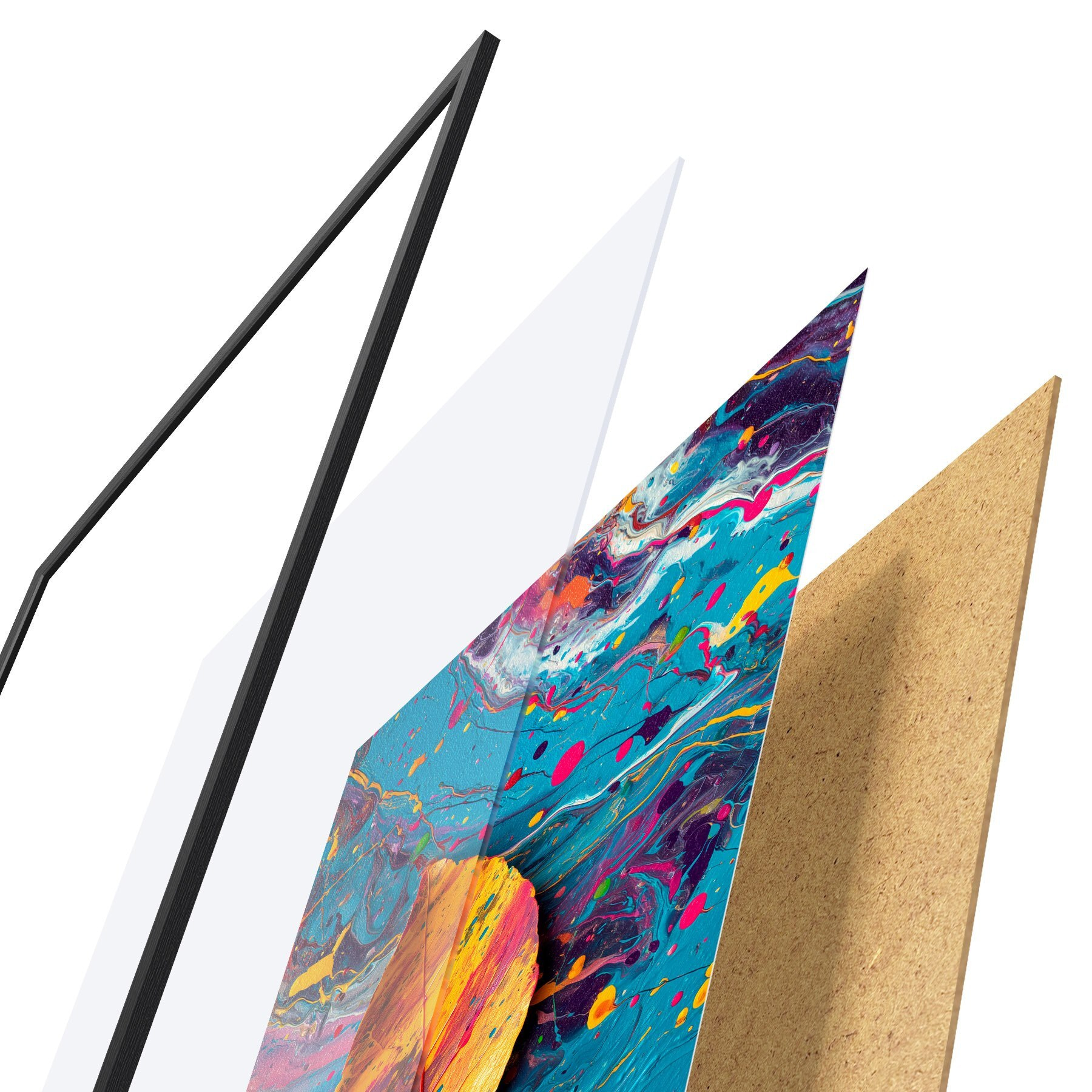 Plakatą sudaro rėmas, pleksiklas, atspausdintas vaizdas ir medžio drožlių plokštės pagrindas. Plakatą galima iš karto pakabinti ant sienos dėl kitoje pusėje esančių laikiklių.