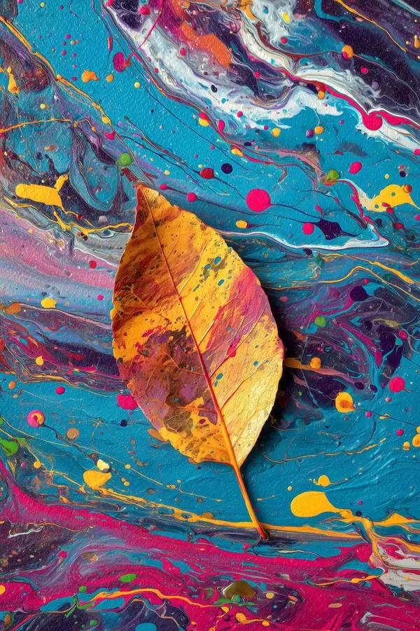 Plakatas Ryškus lapas spalvingame fone: abstrakti kompozicija f45245