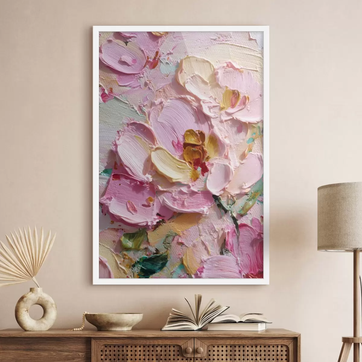 Plakatas Rožinės magnolijos: tekstūrinė tapyba su erdviniais potėpiais f45249
