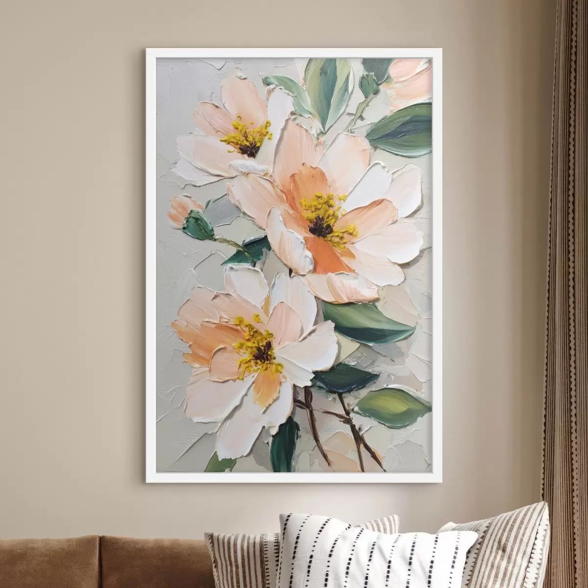 Plakatas Žiedai su baltais žiedlapiais ir geltonais centrais f45262