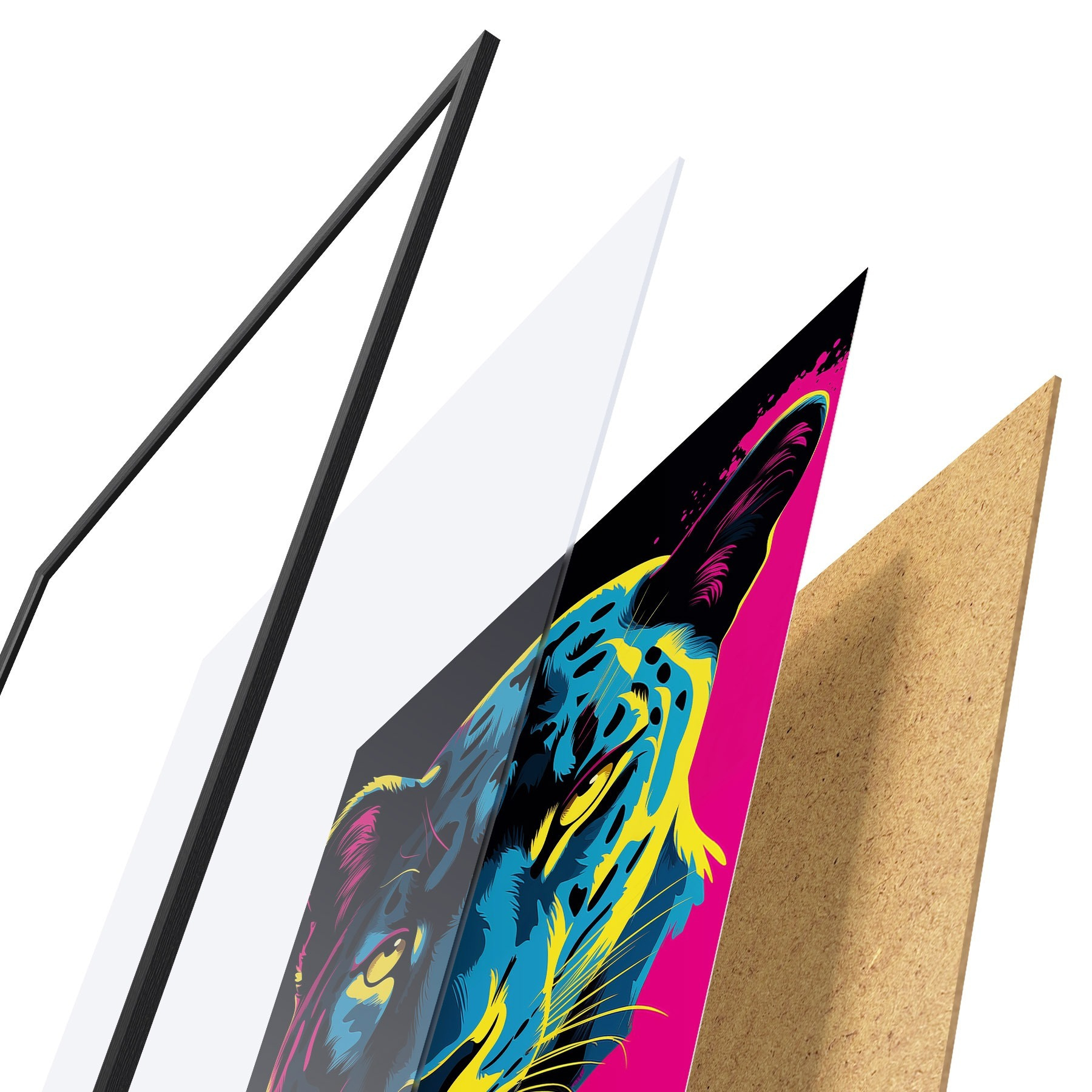 Plakatą sudaro rėmas, pleksiklas, atspausdintas vaizdas ir medžio drožlių plokštės pagrindas. Plakatą galima iš karto pakabinti ant sienos dėl kitoje pusėje esančių laikiklių.