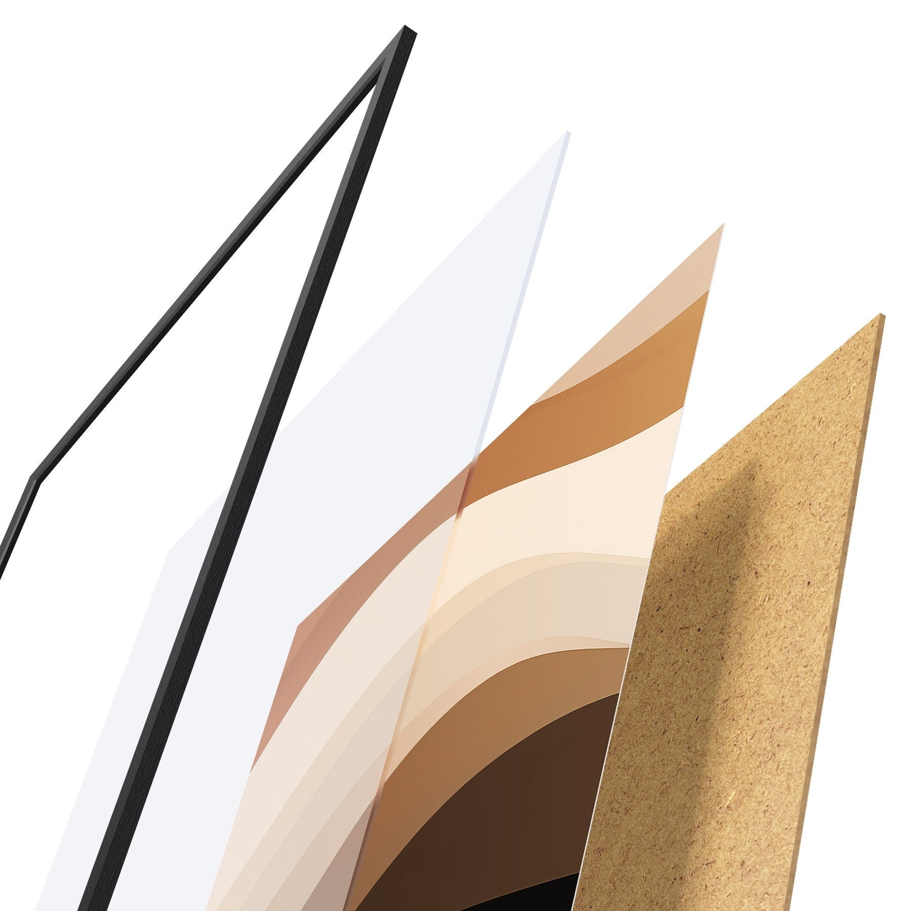 Plakatą sudaro rėmas, pleksiklas, atspausdintas vaizdas ir medžio drožlių plokštės pagrindas. Plakatą galima iš karto pakabinti ant sienos dėl kitoje pusėje esančių laikiklių.