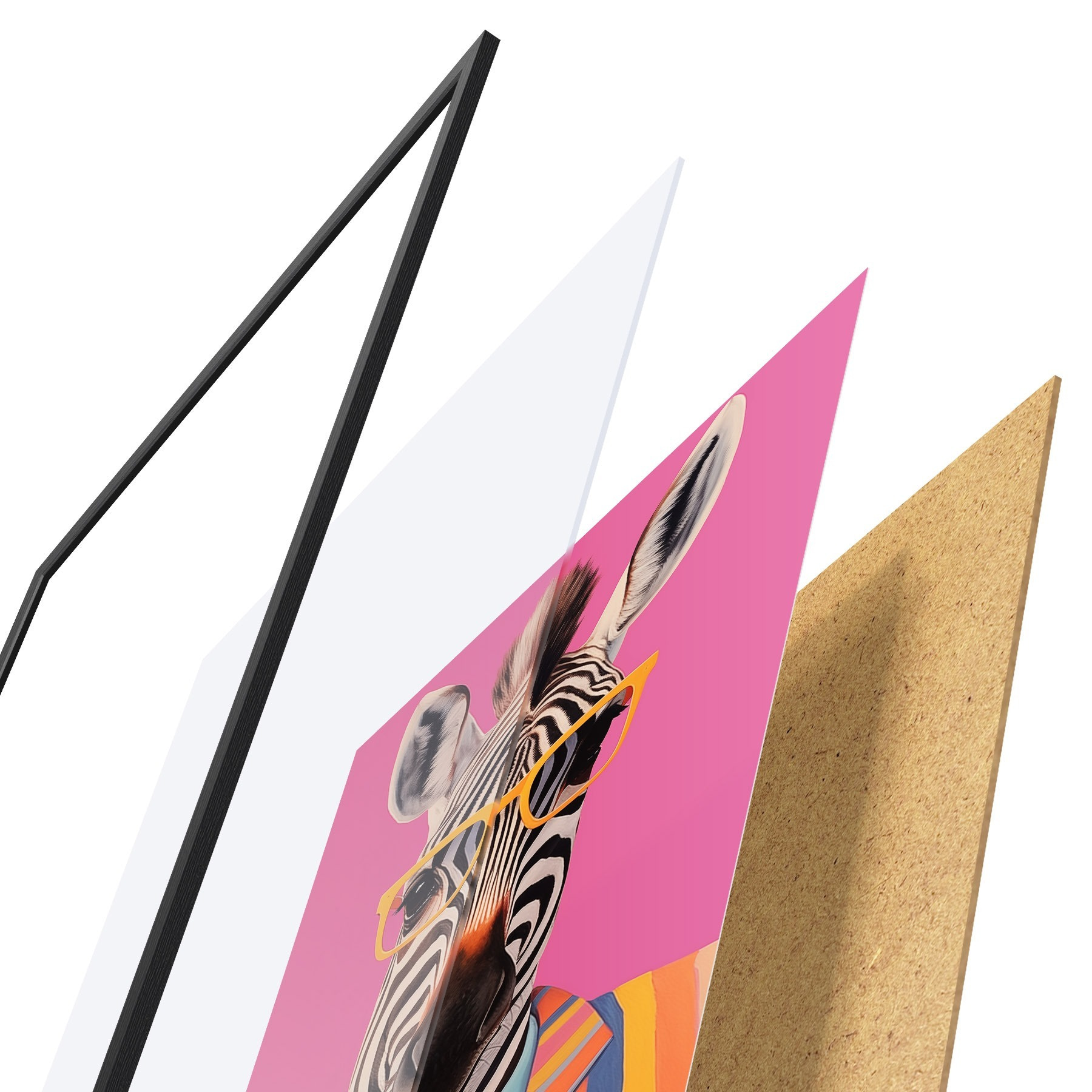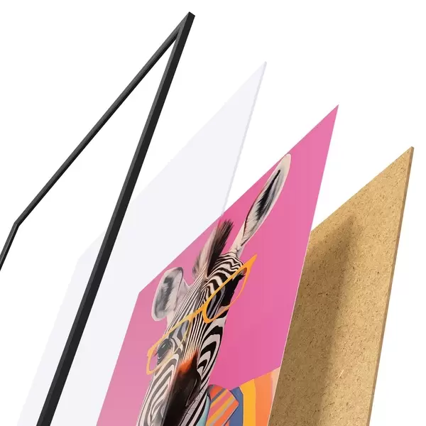 Plakatą sudaro rėmas, pleksiklas, atspausdintas vaizdas ir medžio drožlių plokštės pagrindas. Plakatą galima iš karto pakabinti ant sienos dėl kitoje pusėje esančių laikiklių.
