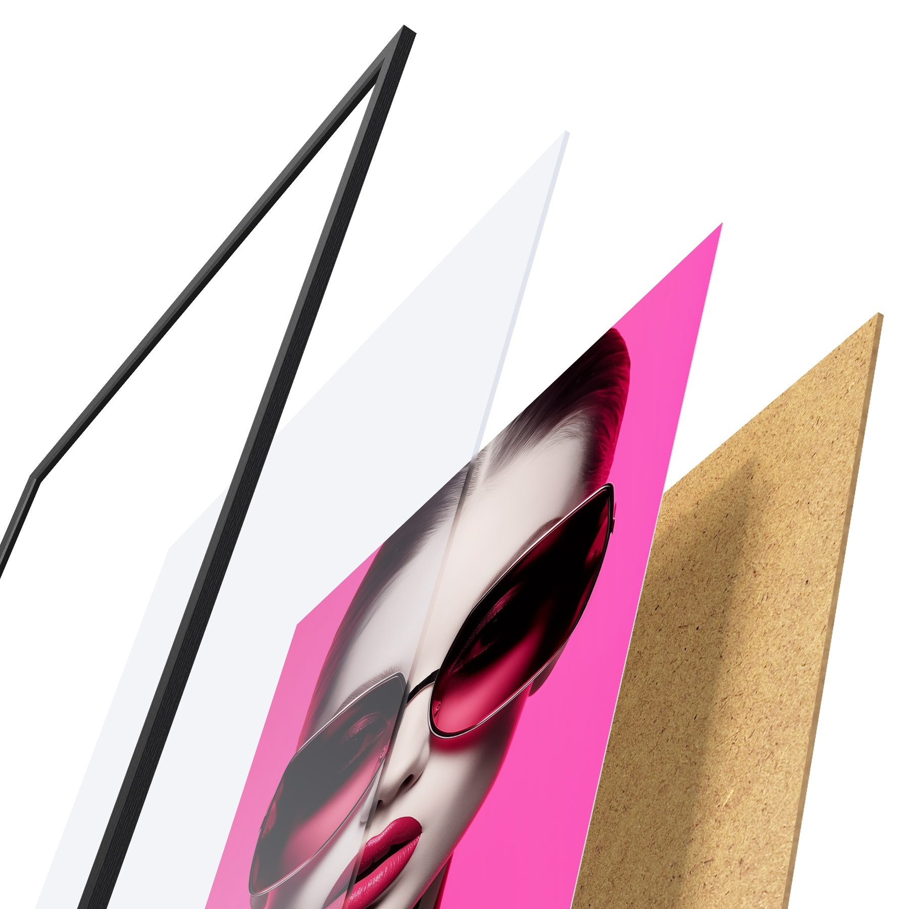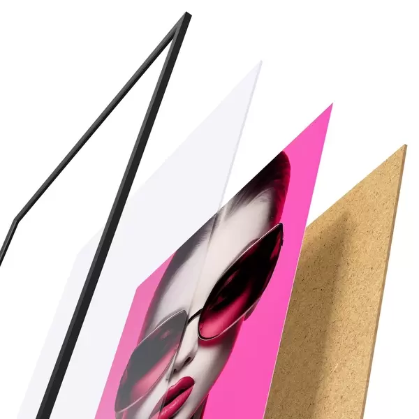 Plakatą sudaro rėmas, pleksiklas, atspausdintas vaizdas ir medžio drožlių plokštės pagrindas. Plakatą galima iš karto pakabinti ant sienos dėl kitoje pusėje esančių laikiklių.