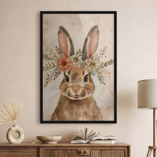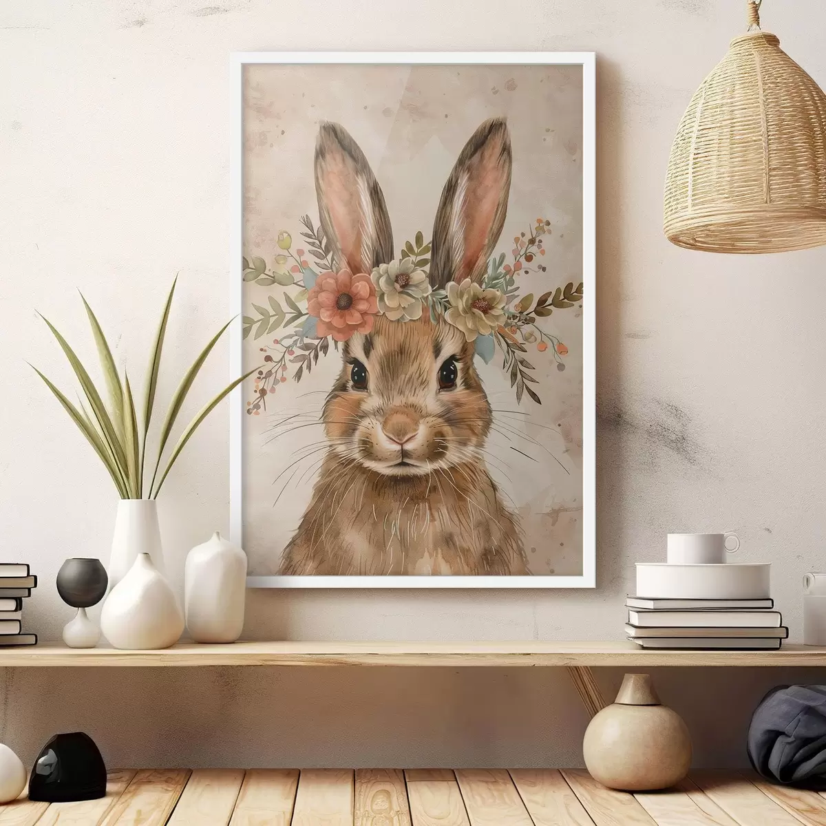 Plakatas Mielas kiškis su gėlėmis akvarelės stiliumi Ne f45332