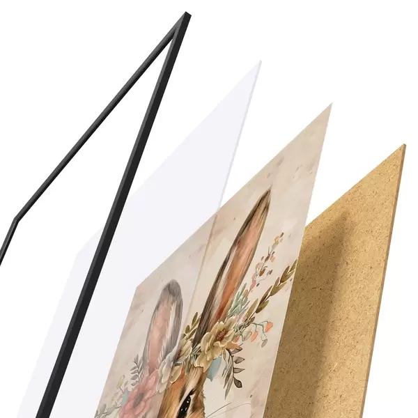 Plakatą sudaro rėmas, pleksiklas, atspausdintas vaizdas ir medžio drožlių plokštės pagrindas. Plakatą galima iš karto pakabinti ant sienos dėl kitoje pusėje esančių laikiklių.