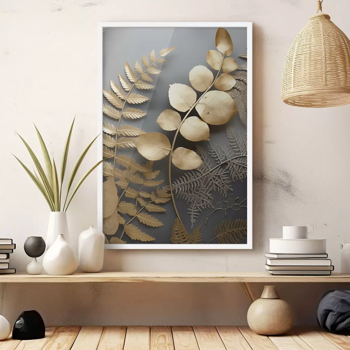 Plakatas Paparčio ir eukalipto šakos tamsiame fone Ne f45334