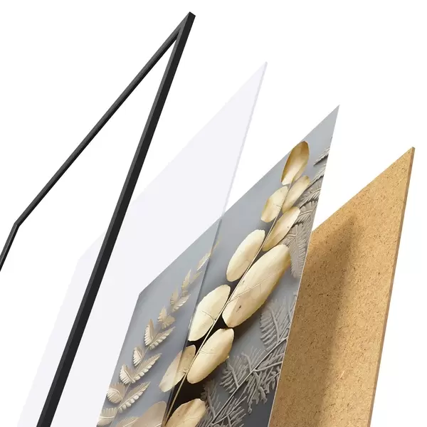 Plakatą sudaro rėmas, pleksiklas, atspausdintas vaizdas ir medžio drožlių plokštės pagrindas. Plakatą galima iš karto pakabinti ant sienos dėl kitoje pusėje esančių laikiklių.