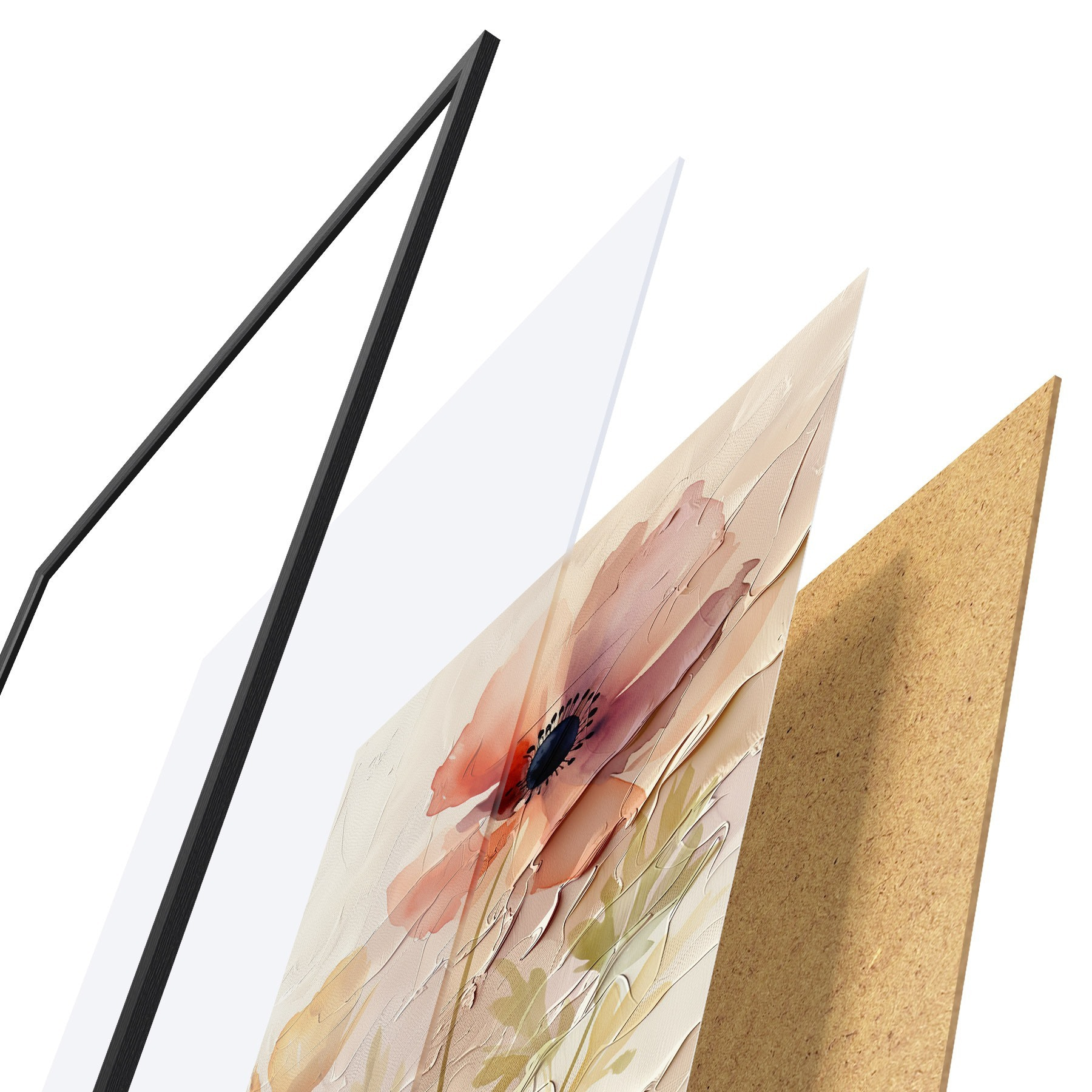 Plakatą sudaro rėmas, pleksiklas, atspausdintas vaizdas ir medžio drožlių plokštės pagrindas. Plakatą galima iš karto pakabinti ant sienos dėl kitoje pusėje esančių laikiklių.