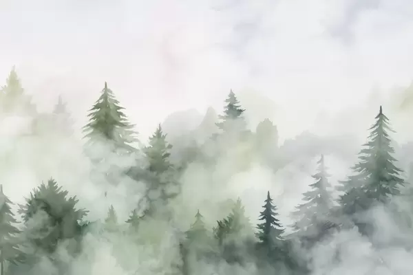 Plakatas Miškas rūke, imituojantis akvarelę f45343