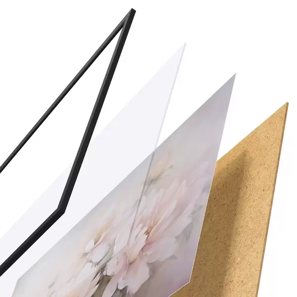 Plakatą sudaro rėmas, pleksiklas, atspausdintas vaizdas ir medžio drožlių plokštės pagrindas. Plakatą galima iš karto pakabinti ant sienos dėl kitoje pusėje esančių laikiklių.