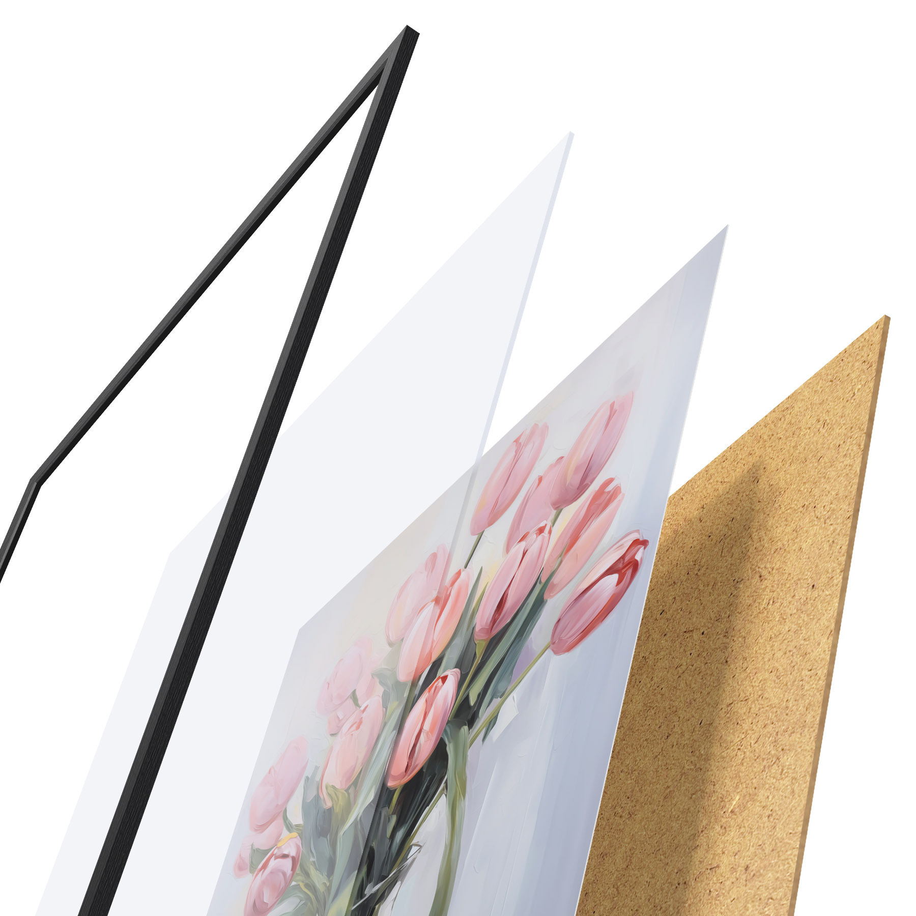 Plakatą sudaro rėmas, pleksiklas, atspausdintas vaizdas ir medžio drožlių plokštės pagrindas. Plakatą galima iš karto pakabinti ant sienos dėl kitoje pusėje esančių laikiklių.