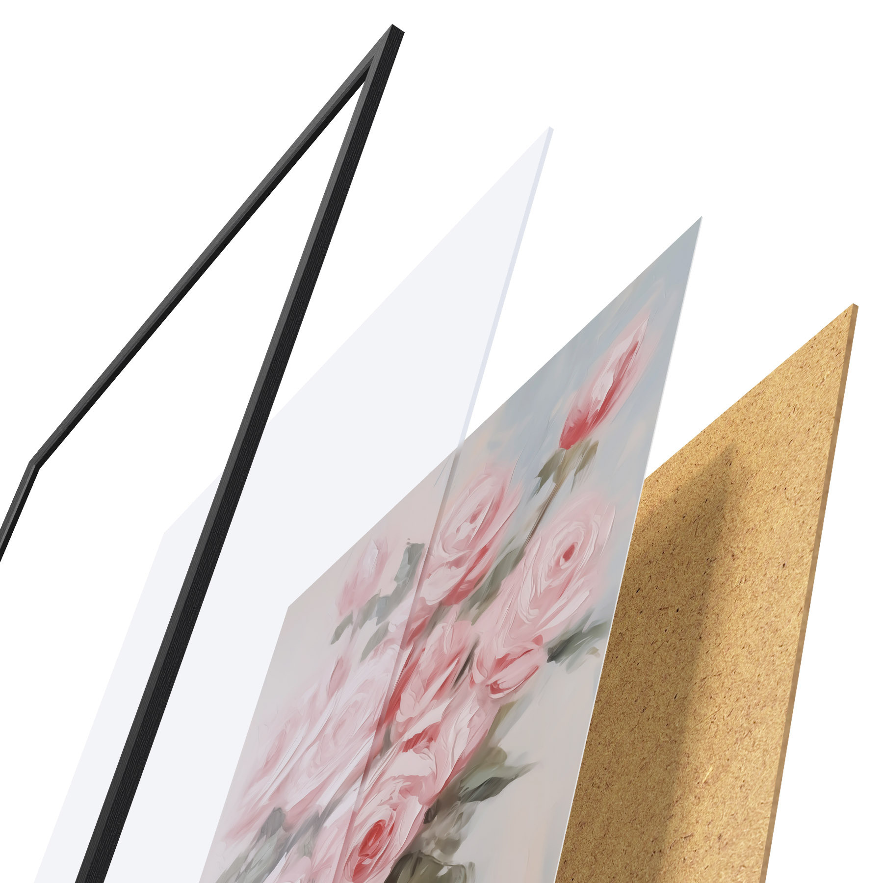Plakatą sudaro rėmas, pleksiklas, atspausdintas vaizdas ir medžio drožlių plokštės pagrindas. Plakatą galima iš karto pakabinti ant sienos dėl kitoje pusėje esančių laikiklių.