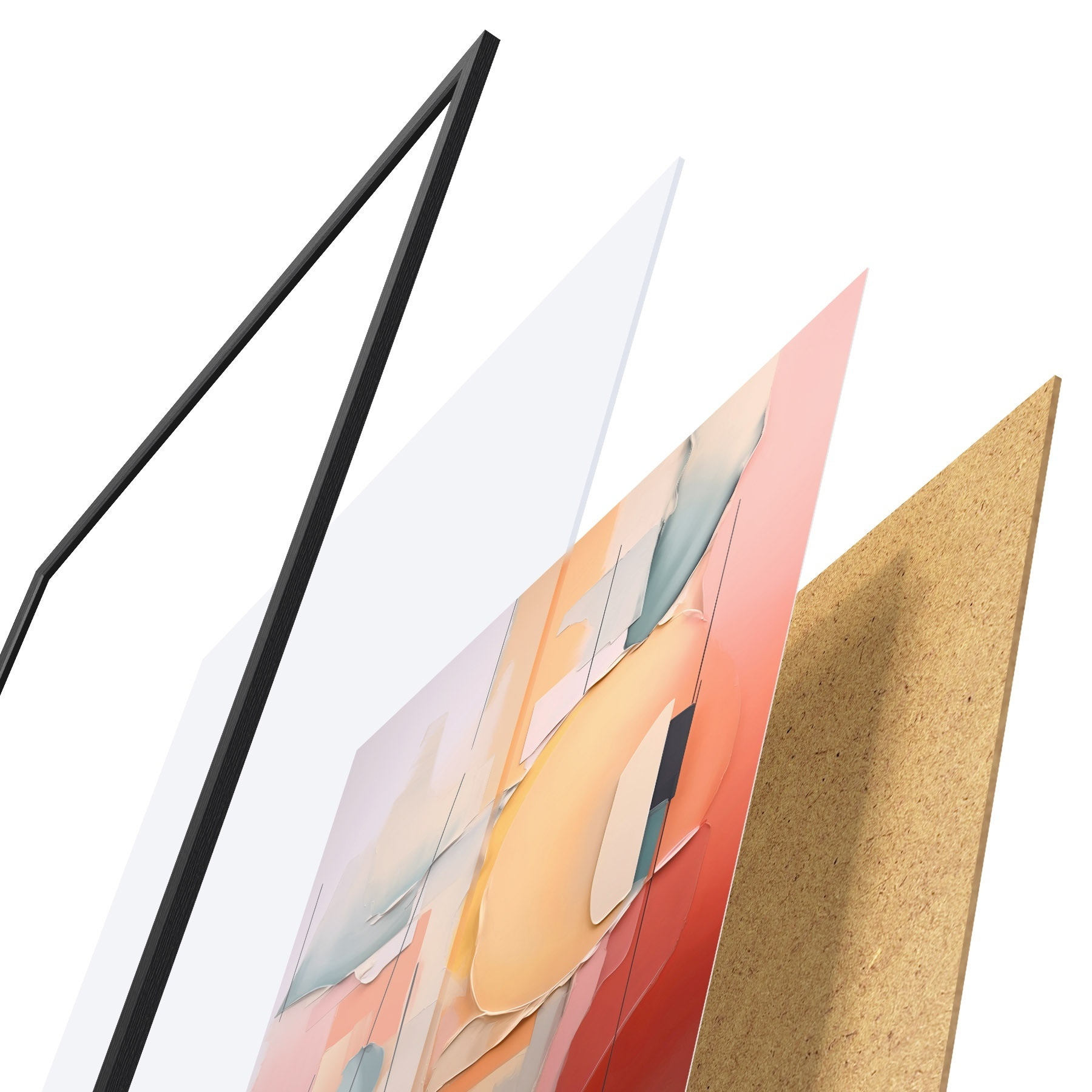 Plakatą sudaro rėmas, pleksiklas, atspausdintas vaizdas ir medžio drožlių plokštės pagrindas. Plakatą galima iš karto pakabinti ant sienos dėl kitoje pusėje esančių laikiklių.