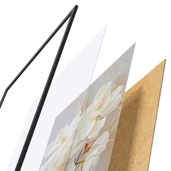Plakatą sudaro rėmas, pleksiklas, atspausdintas vaizdas ir medžio drožlių plokštės pagrindas. Plakatą galima iš karto pakabinti ant sienos dėl kitoje pusėje esančių laikiklių.