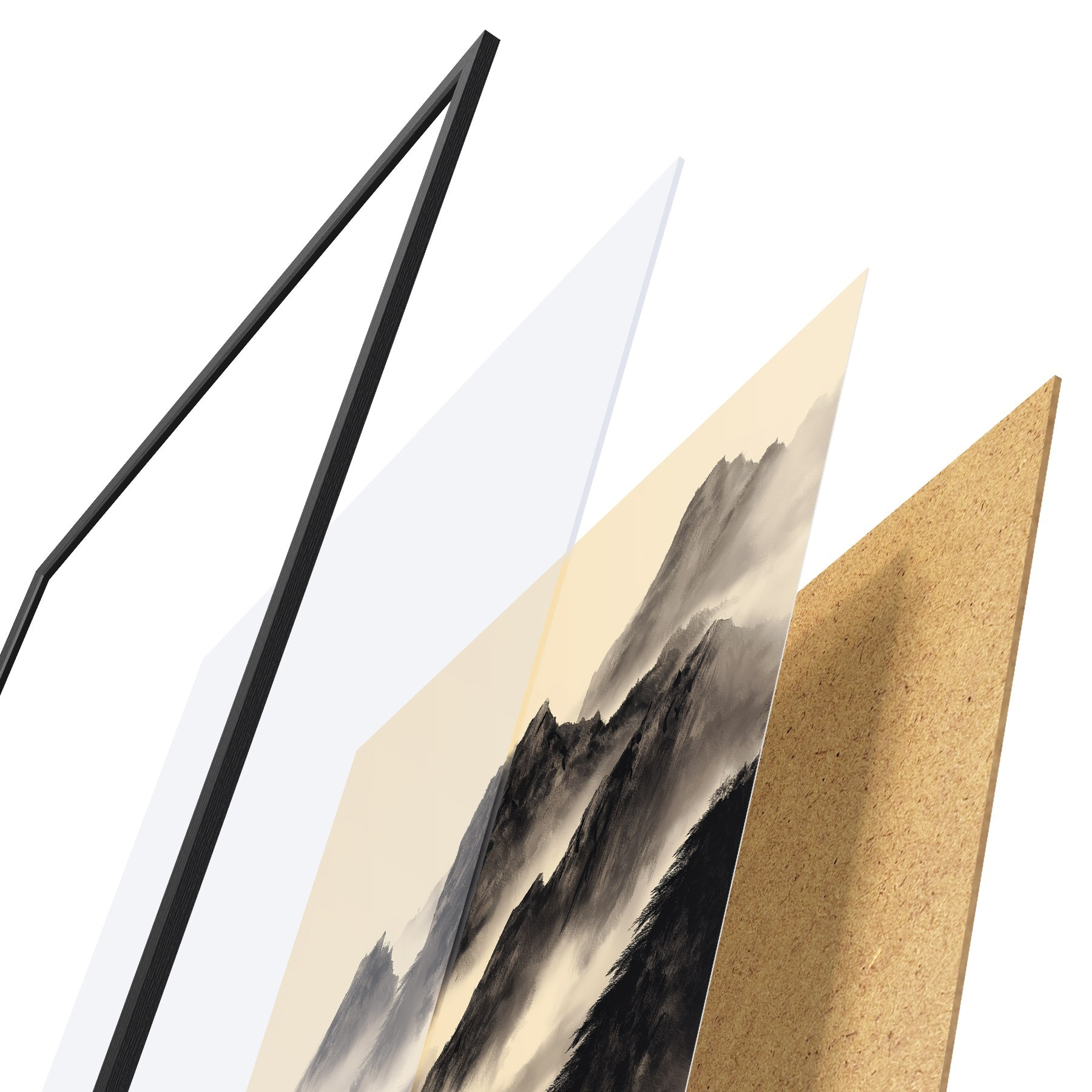 Plakatą sudaro rėmas, pleksiklas, atspausdintas vaizdas ir medžio drožlių plokštės pagrindas. Plakatą galima iš karto pakabinti ant sienos dėl kitoje pusėje esančių laikiklių.