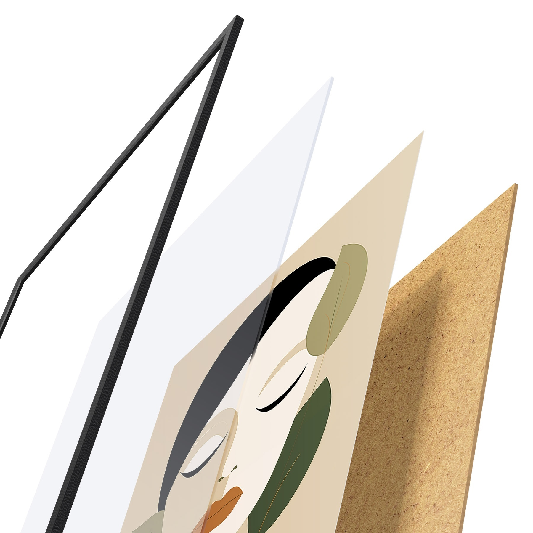 Plakatą sudaro rėmas, pleksiklas, atspausdintas vaizdas ir medžio drožlių plokštės pagrindas. Plakatą galima iš karto pakabinti ant sienos dėl kitoje pusėje esančių laikiklių.