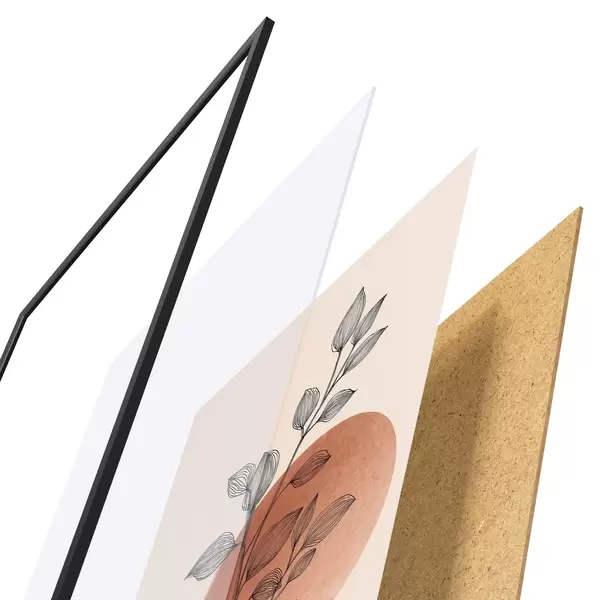 Plakatą sudaro rėmas, pleksiklas, atspausdintas vaizdas ir medžio drožlių plokštės pagrindas. Plakatą galima iš karto pakabinti ant sienos dėl kitoje pusėje esančių laikiklių.