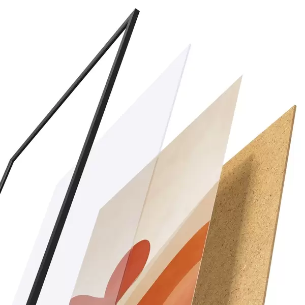 Plakatą sudaro rėmas, pleksiklas, atspausdintas vaizdas ir medžio drožlių plokštės pagrindas. Plakatą galima iš karto pakabinti ant sienos dėl kitoje pusėje esančių laikiklių.