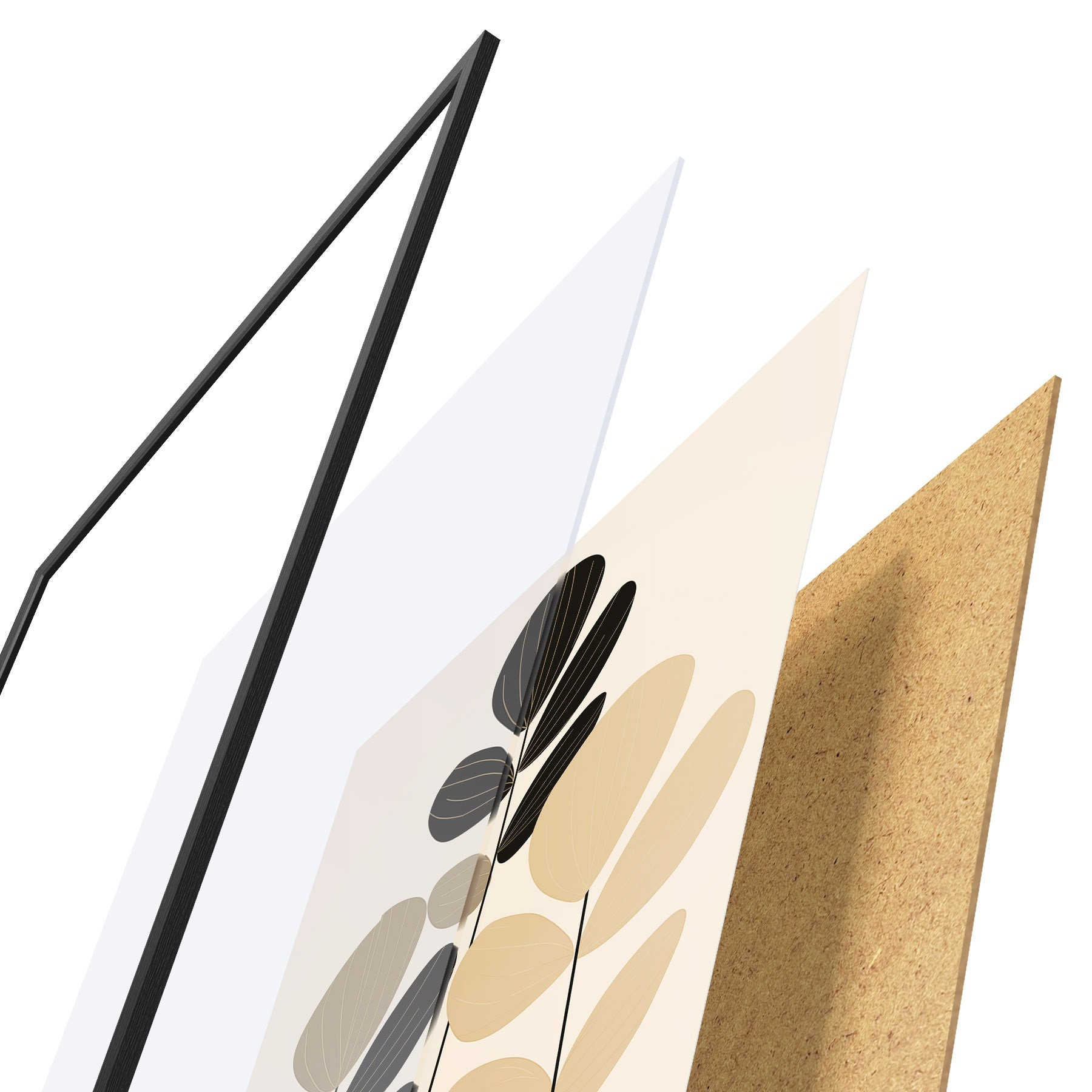 Plakatą sudaro rėmas, pleksiklas, atspausdintas vaizdas ir medžio drožlių plokštės pagrindas. Plakatą galima iš karto pakabinti ant sienos dėl kitoje pusėje esančių laikiklių.