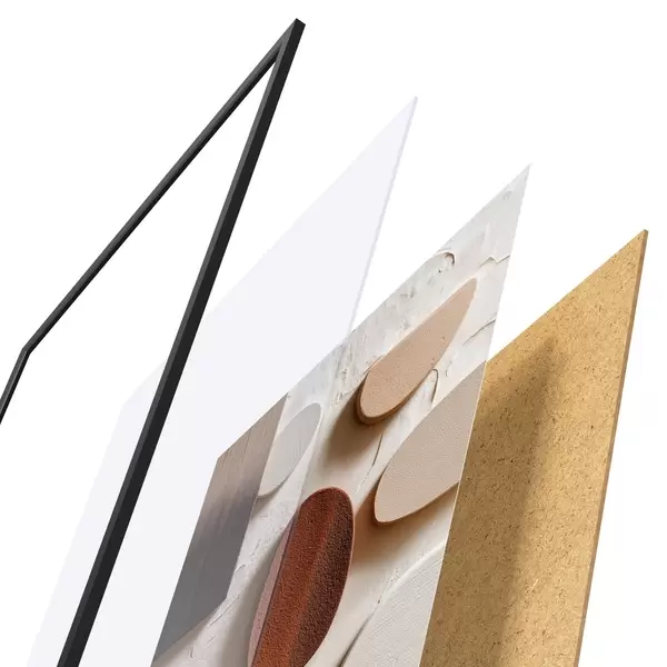 Plakatą sudaro rėmas, pleksiklas, atspausdintas vaizdas ir medžio drožlių plokštės pagrindas. Plakatą galima iš karto pakabinti ant sienos dėl kitoje pusėje esančių laikiklių.
