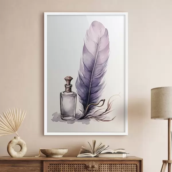 Plakatas Akvarelinė plunksnos ir stiklinio tušo buteliuko iliustracija Ne f45410