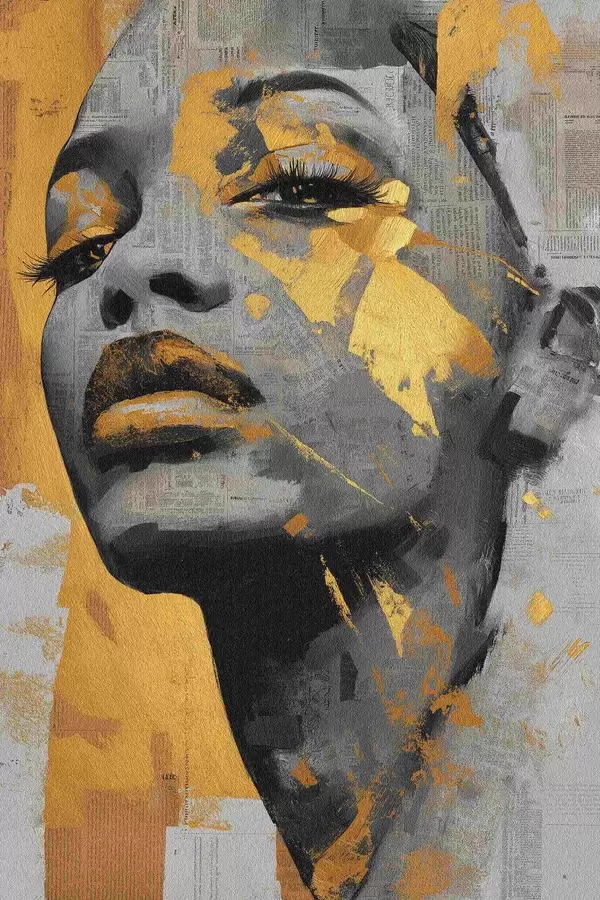 Plakatas Mišrios medijos portretas su laikraščių fragmentais ir dekoratyviniais potėpiais f45419