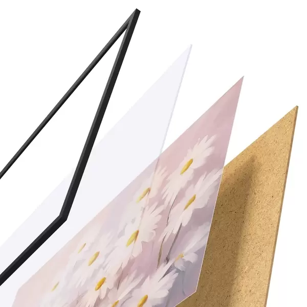 Plakatą sudaro rėmas, pleksiklas, atspausdintas vaizdas ir medžio drožlių plokštės pagrindas. Plakatą galima iš karto pakabinti ant sienos dėl kitoje pusėje esančių laikiklių.