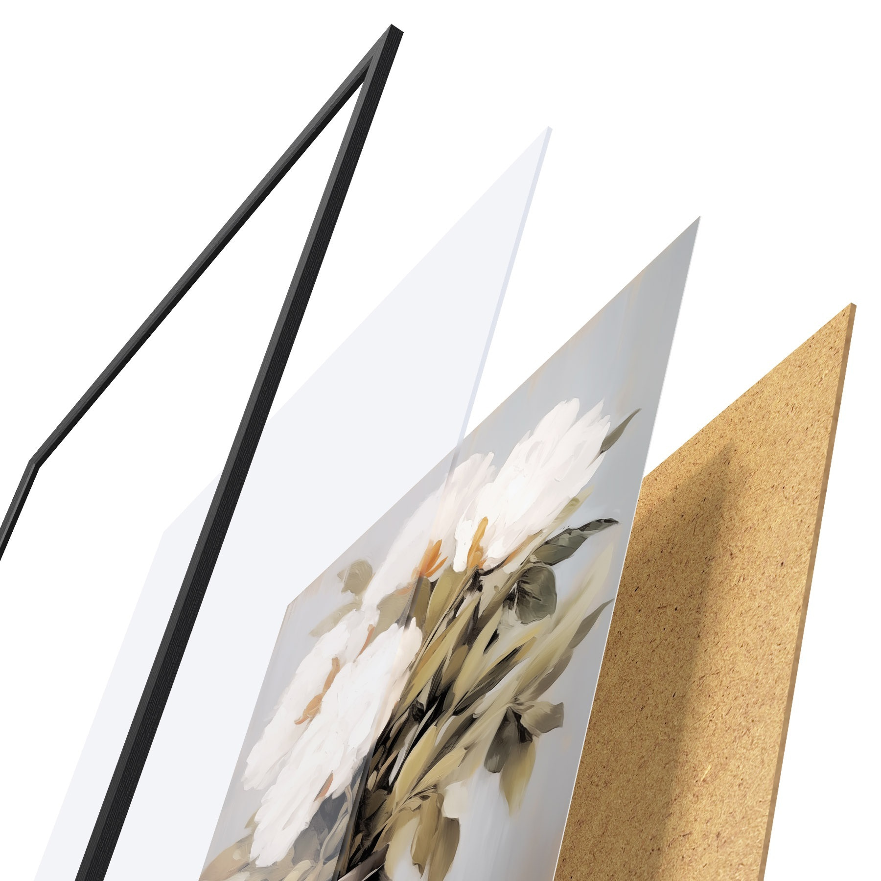 Plakatą sudaro rėmas, pleksiklas, atspausdintas vaizdas ir medžio drožlių plokštės pagrindas. Plakatą galima iš karto pakabinti ant sienos dėl kitoje pusėje esančių laikiklių.