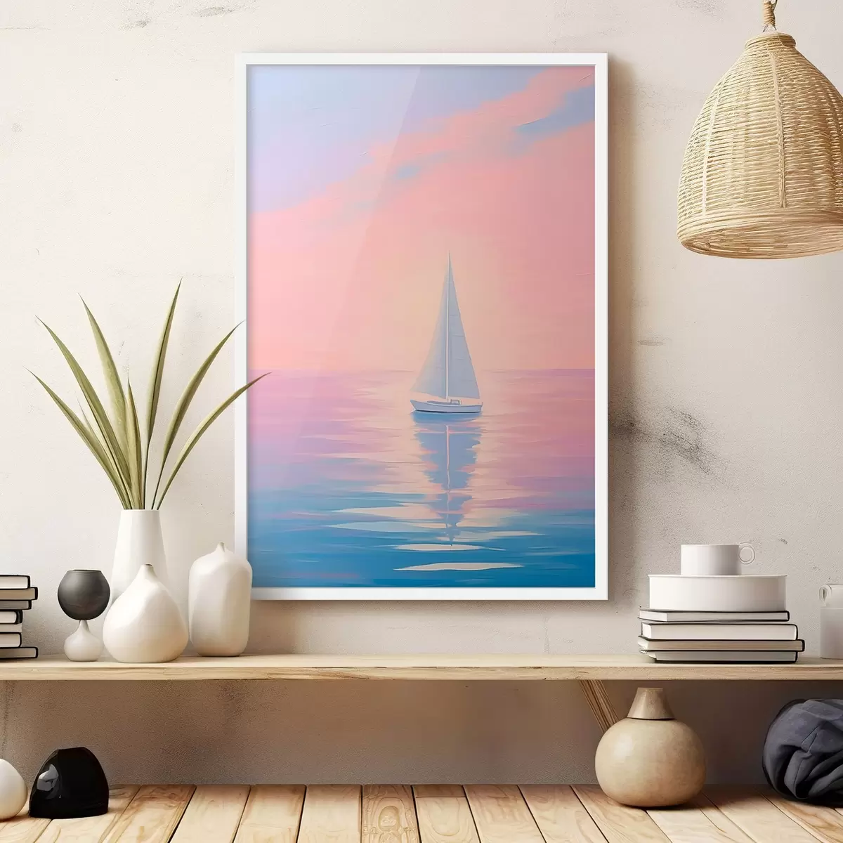 Plakatas Burlaivis jūroje saulėlydžio metu f45428