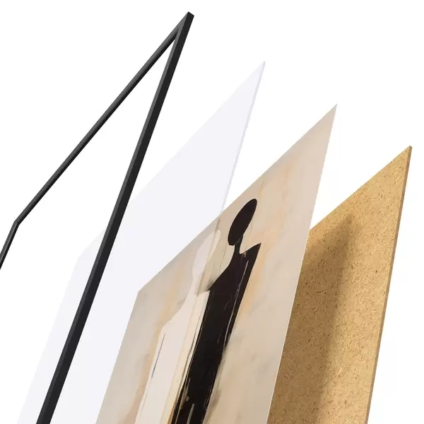 Plakatą sudaro rėmas, pleksiklas, atspausdintas vaizdas ir medžio drožlių plokštės pagrindas. Plakatą galima iš karto pakabinti ant sienos dėl kitoje pusėje esančių laikiklių.